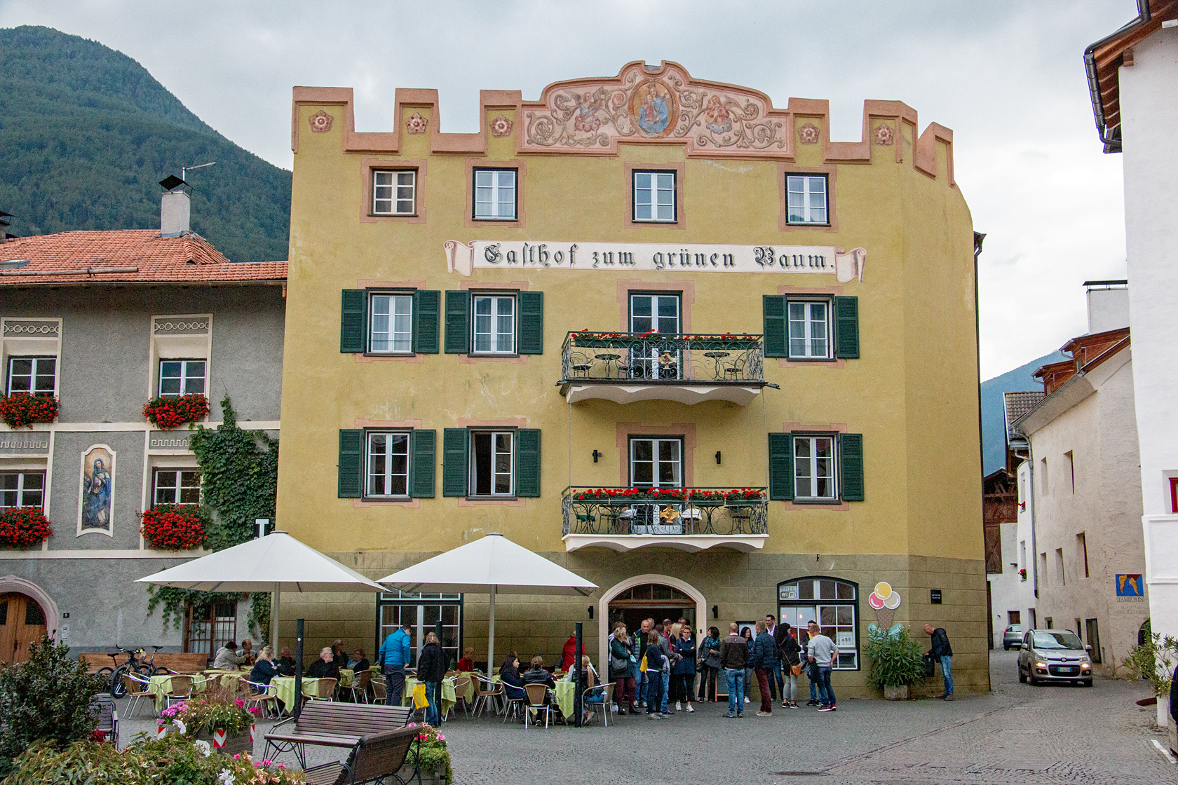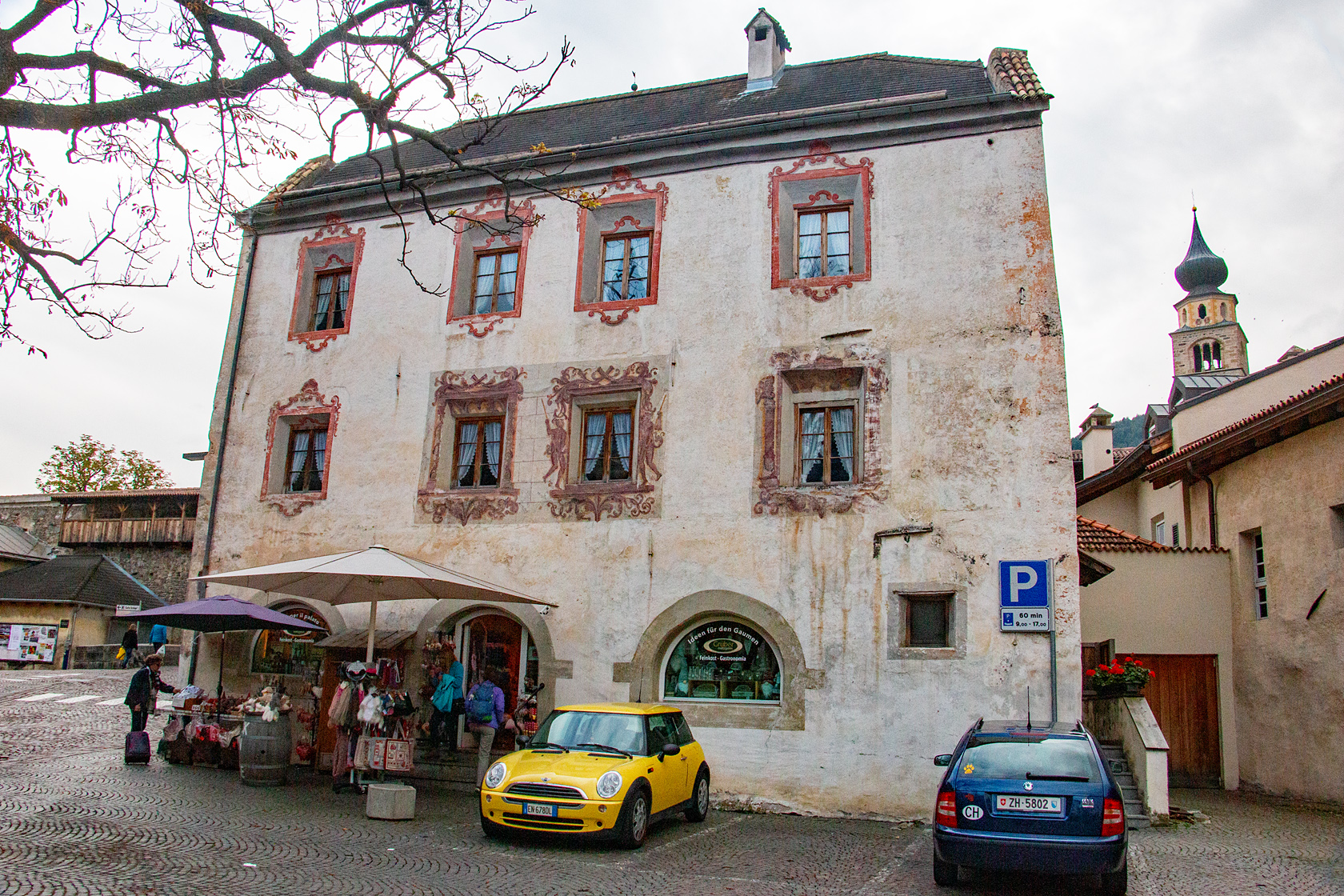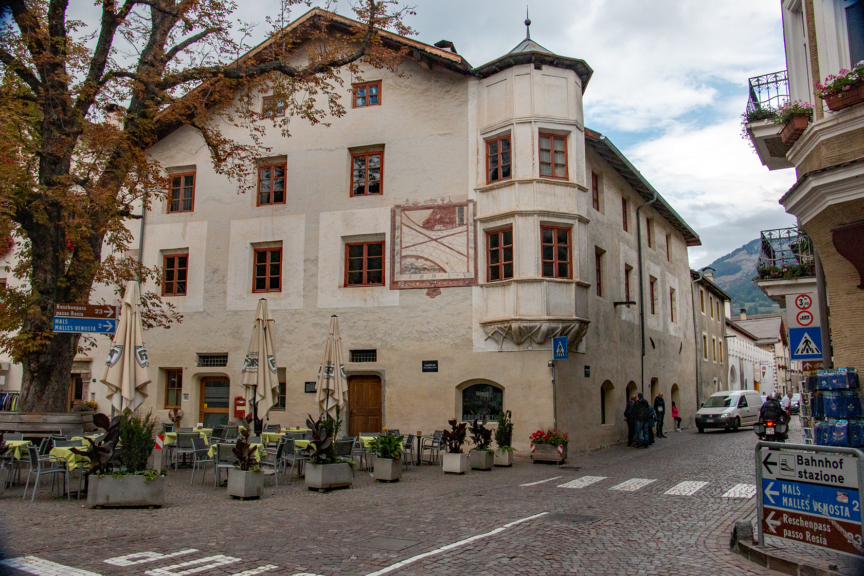 Auf der Rückfahrt nach Hause, hielten wir in Meran und Glurns. Nach dem Ofenpass hielten wir noch im Nationalpark bei Stabelchod P8 und liefen durch den Wald bis zu einer Hütte an der sich bereits mehrere Personen mit Fernrohren, Kameras und Tarnmaterial bereit machten um das Wild (Brunftzeit) zu beobachten.