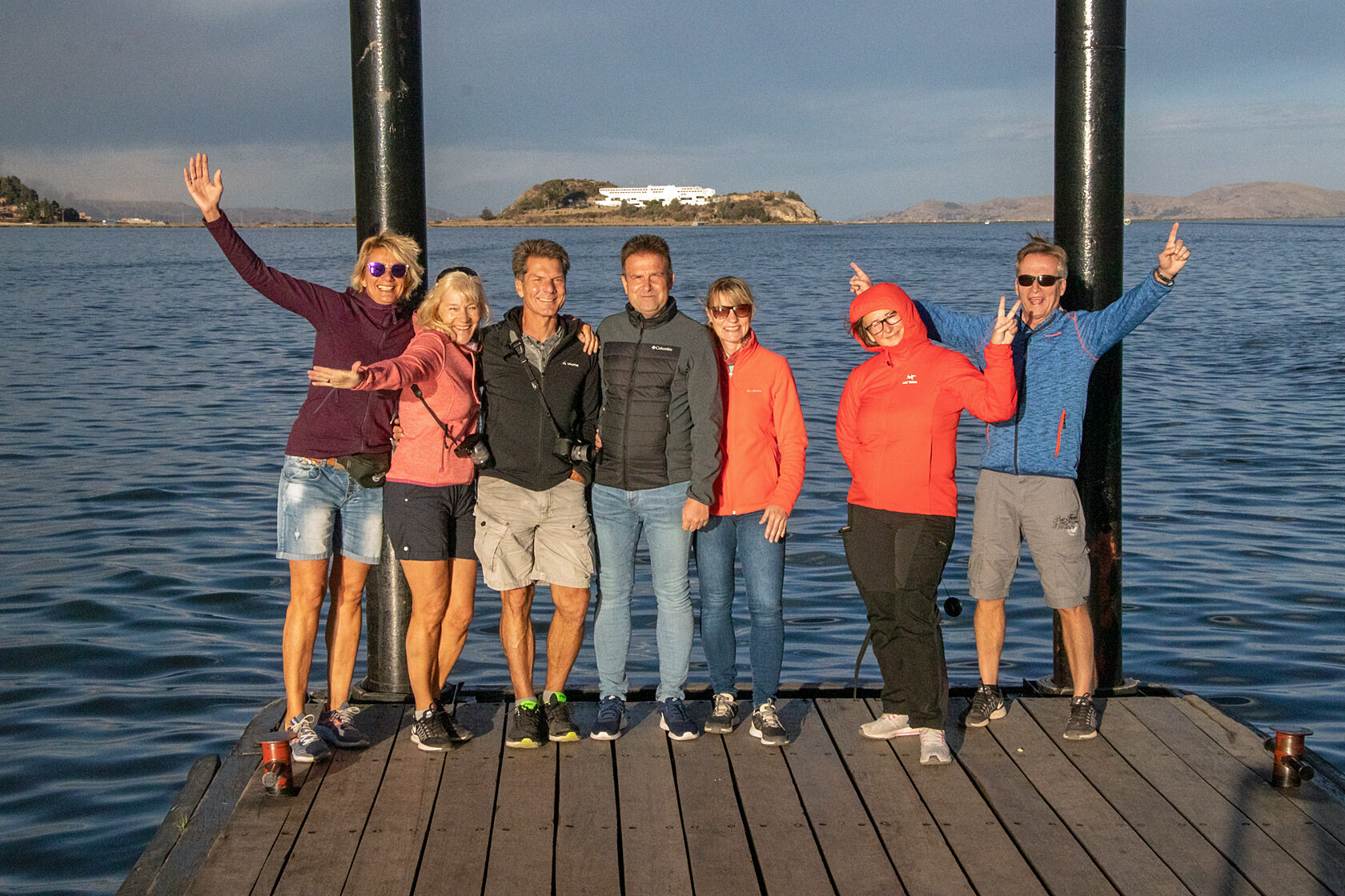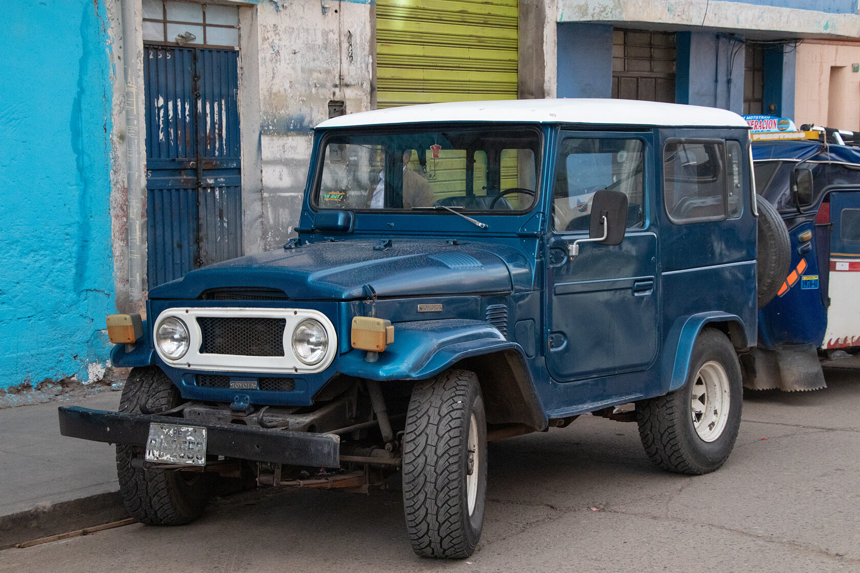 Hasen! Wie viele sind es? Drei sind gut zu sehen, aber da gibt es noch mehr!Dieser Friedhof weit ab einer Wohnsiedlung.Nein, das ist nicht George Washington .Einer von zwei dieser Vögel die bei einer Tankstelle umherflogen und uns beobachteten.Irgendwo über 4000m einzelne Flamingo.Irgendwo da unten sind die Flamingo, Enten und andere Vögel.Wie viele Aufnahmen an diesem Tag, aus dem fahrenden Bus fotografiert.Kaum in Puno, gibts Musik um die Ohren. Es haben alle, sogar Minderjährige Alkohol intus.Verschiedene Trachten. Wohl je nach Ort, oder Gesellschaft am Fest.Pollo, Frites, Bohnen und Ketchup, Mayo.Ehm, nein. Die spielen nicht am Basler Cortège. Zudem wird bei uns keine Panflöte verwendet. 😉Aha, ein Toyota Oldtimer! Für das Alter in sehr gutem Zustand.Die Hannoveraner und ich machen noch einen Abstecher an den Hafen. Dabei kommen wir eine Pharmacia vorbei. Unsere Ärztin in der Gruppe meinte dass wir ein Rezept bräuchten. Ich fragte den Herrn ob er uns Diamox (Acetazolamid) habe, reichte uns zwei Tabletten und wir meinten zwei ganze Streifen zu je 10 Stück. Er gab sie uns ohne weiter zu fragen. Ich bezahlte und wir gingen. Somit war unsere Gruppe mit dem Mitell versorgt. Strassenauslage der Geschäfte.