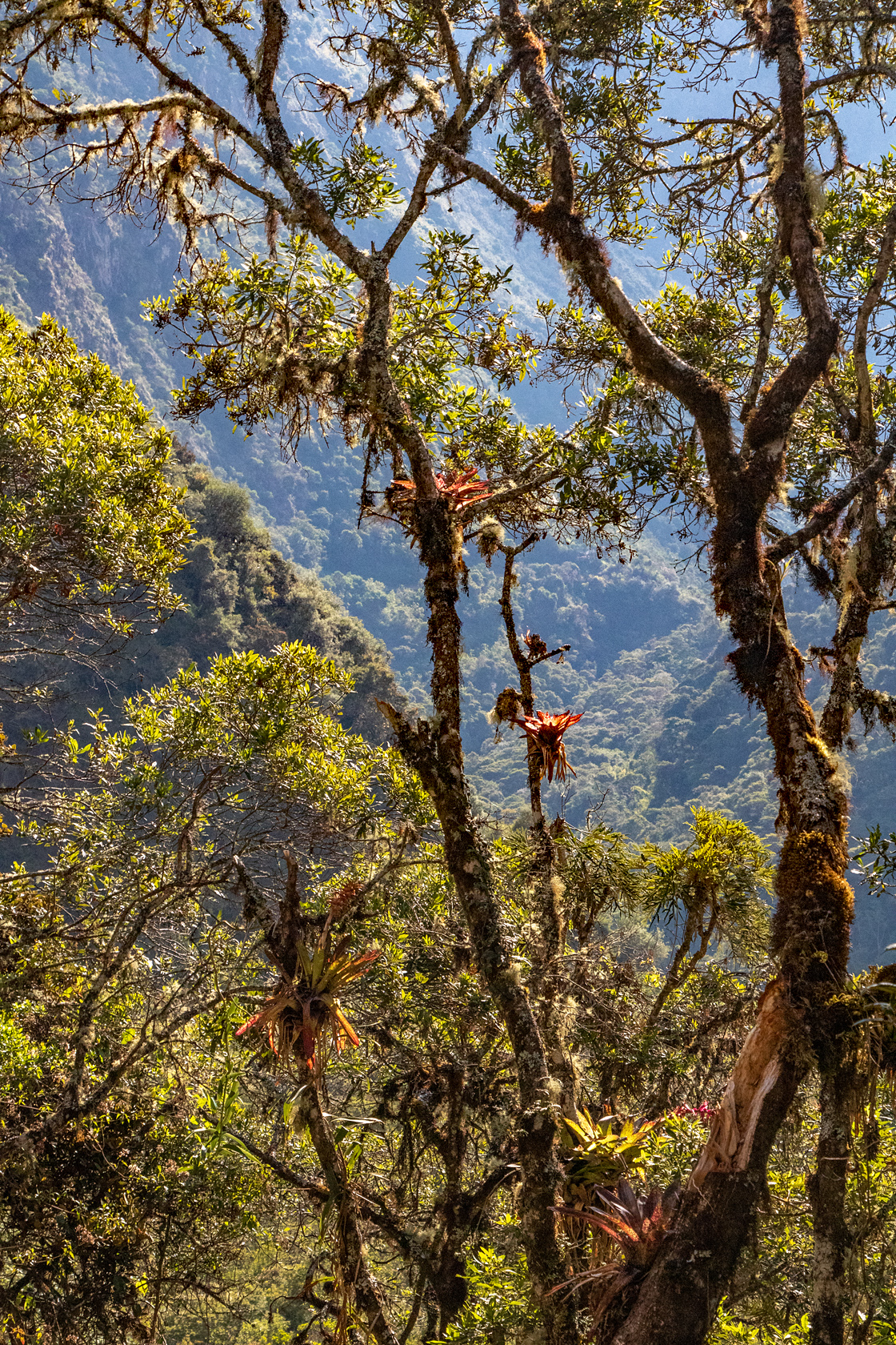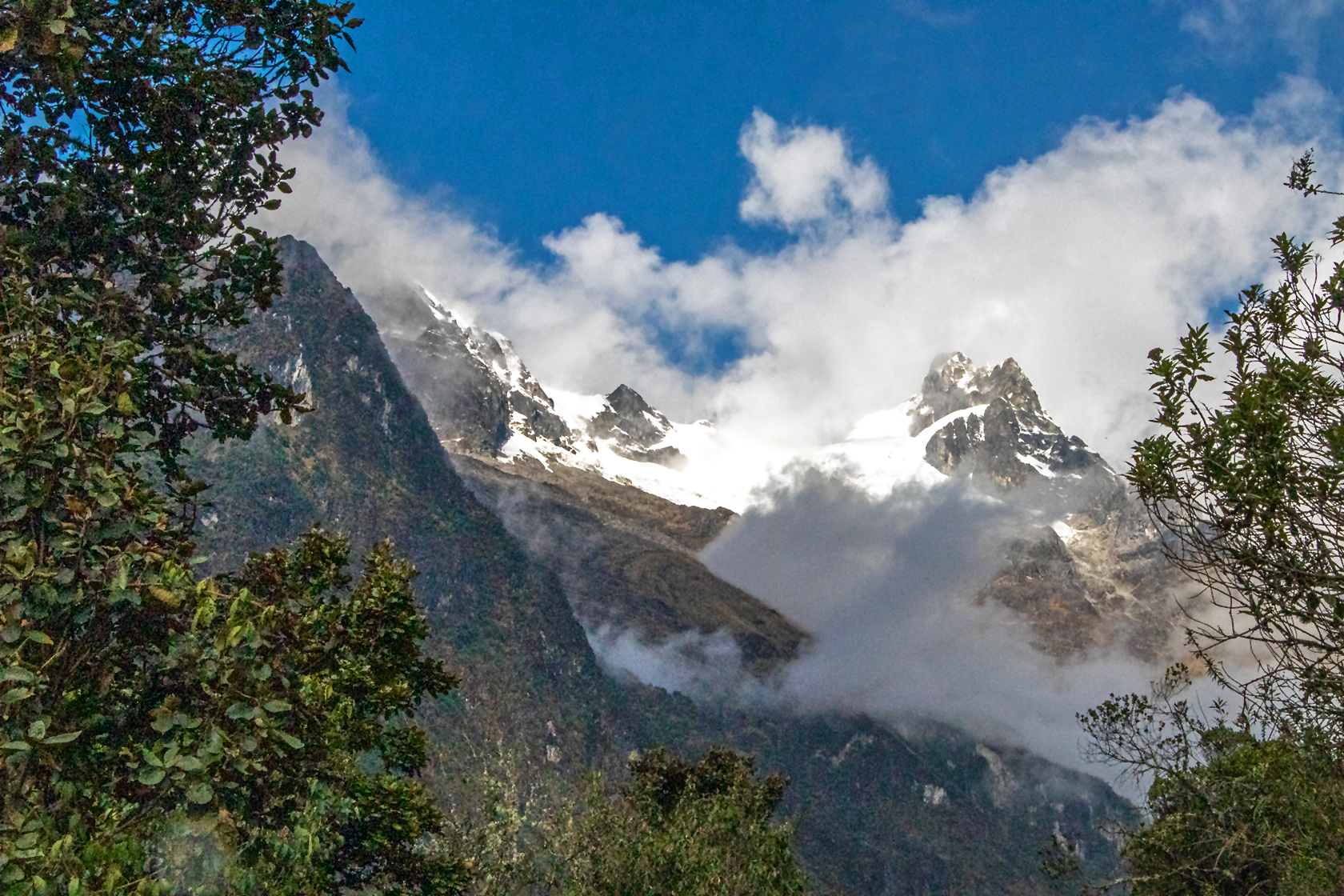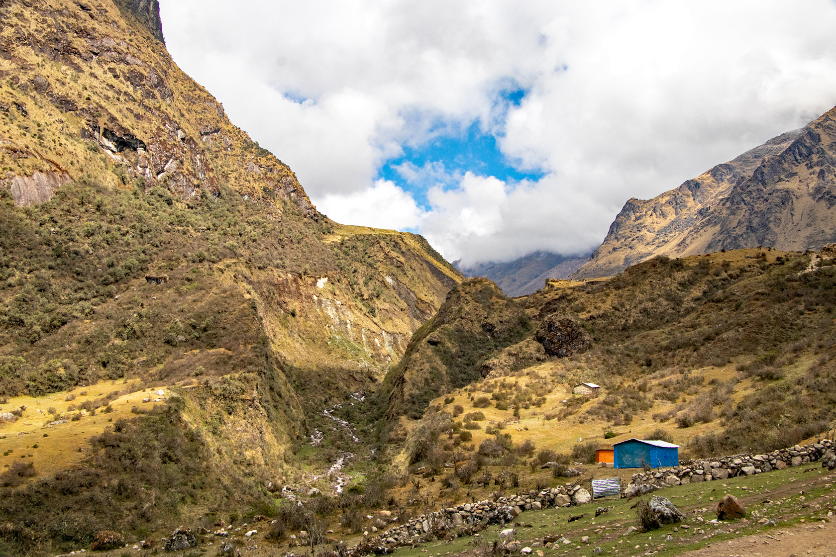 Das sind die besseren Unterkünfte. Da lassen sich schön Sterne beobachten..Erster Zwischenhalt. Vor dem steilen Anstieg.Der direktere Aufstieg der Wanderer ist entlang einer grossen Moräne.Mein Pferd wurde geführt. Eigentlich habe ich selbst Kontrolle über mein ‚Gefährt‘. So konnte ich dafür fotografieren.Wanderer, Transportpferde, Esel, Reisende auf Pferden. Am Salkantay ist was los.Gesunde Pferde, sehr gutes Saumzeug und der Sattel mit Griffmulde war für mich ideal.Es ist kühl auf dem Pferd, und trotzdem irgendwie angenehm.Es bereitet Freude auf den Pferden den Berg hoch zu kommen.Genaugenommen sind es 4630m.Der Salkantay ist 6’271m hoch.Nach dem Salkantay Pass geht es noch einige Studen bis auf etwa 3000m in das nächsten Zeltlager.Das Licht wechselt schnell. Und unter dem Zeitdruck ist der Genuss der Bergwanderung etwas eingeschränkt.Trotzdem versuchte ich von der schönen Natur einiges einzufangen.Immer wieder Überraschungen entlang des Weges.Nochmals der Salkantay.Ursula schenkte dem Buben eine Dose mit essbaren Inhalt. Die Mutter wies ihn an nicht alles gleich zu essen. 😉Die Bromeliae sind bereits vorüber. Trotzdem schön so viele an den Bäumen zu entdecken.Andenhimbeere?Der Fotoapparat kam mit den leuchtenden Farben dieser Pflanze nicht zurecht. Mit etwas Photoshop geht’s grad so.Nochmals ganz viele Bromelien.Viele Sträucher und Bäume sind voller Flechten. Ein Zeichen, dass die Luft hier gut ist.Packpferde und -Esel die unsere Zelte, die Küche und weiteres Material zum nächsten Lager bringen. Die Zelte werden von Mitarbeitern des lokalen Veranstalters aufgestellt. Einfach schön! Dieser Strauch hat feine bläuliche Blüten und unübersehbaren Dornen.