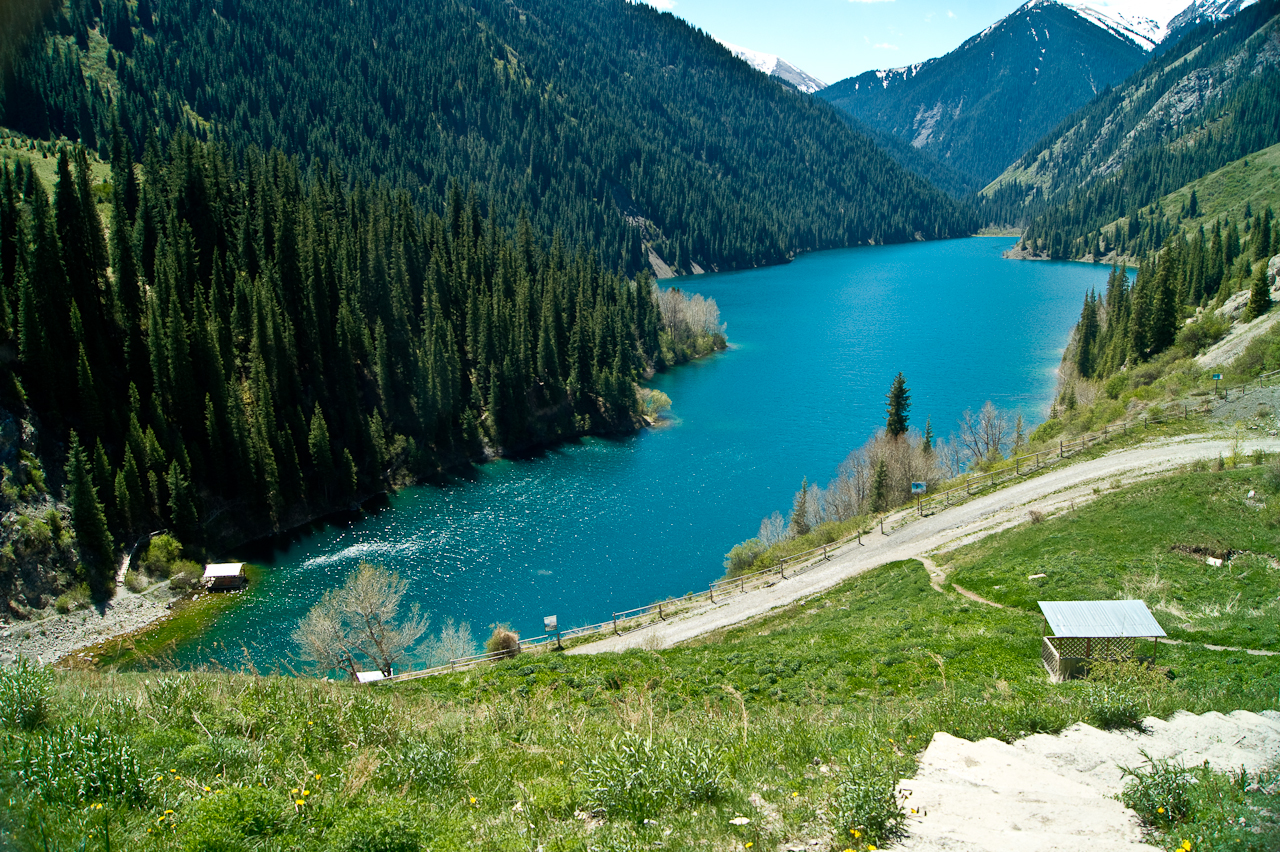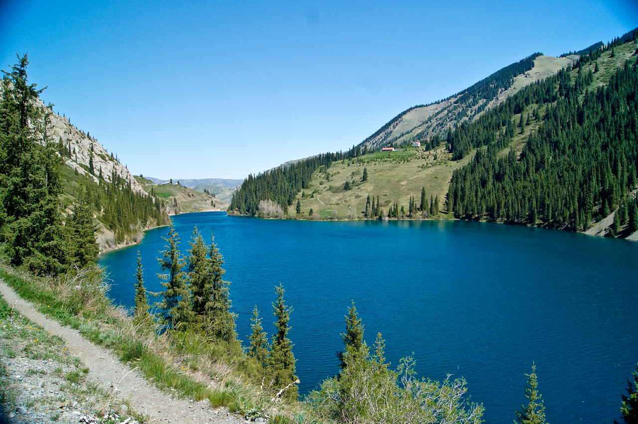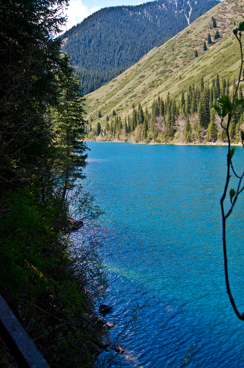 Mit dem Mietwagen bis an das Ende der Strasse, beim 1. Kolsay See.Zuerst probierten wir von der linken Seite am See vorbei zu wandern. Das ging aber nicht, weil im ersten Drittel der Weg nicht mehr weiter ging, also umkehren und von der rechten Seite am See vorbei.Ja, das gefällt mir. Schönstes Wetter, nicht zu heiss, ein schöner See, Wälder und eine gute Wanderbegleitung. Wir beobachteten Vögel die wir nicht kannten. Dumm nur dass ich keinen Feldstecher dabei hatte.Der 2. Kolsay See vermittelt ein ganz anderes Bild. Dennoch ist es sehr schön. Die Bäumen wachsen hier weit über 2000 Meter Höhe über Meer. Es blühen noch einige Tulpen. Apropos Tulpen, die kommen weder aus Holland, noch aus der Türkei, nein die originalen Tulpen kommen aus der Region um Bishkek.Ich bin versucht zu sagen, dass es ja fast wie in den Schweizer Alpen aussieht. Eben nicht! Vieles ist anders hier.Ja! Eine originale Tulpe. Keine holländische Zuchtform sondern ganz natürlich.Auf dem Rückweg nochmals diese dichte Tannenwälder bestaunt. Es riecht auch gut!Zurück in Saty. Ein kleiner, und obschon hier mehrere Unterkünfte für Touristen sind, überschaubarer Ort. Fast nur Einheimischen die einem begegnen.