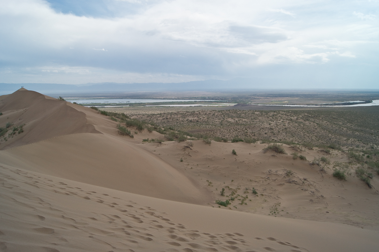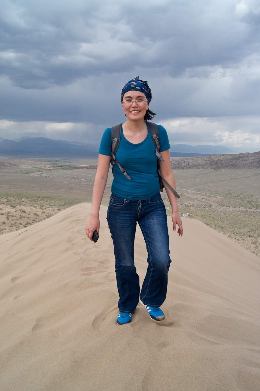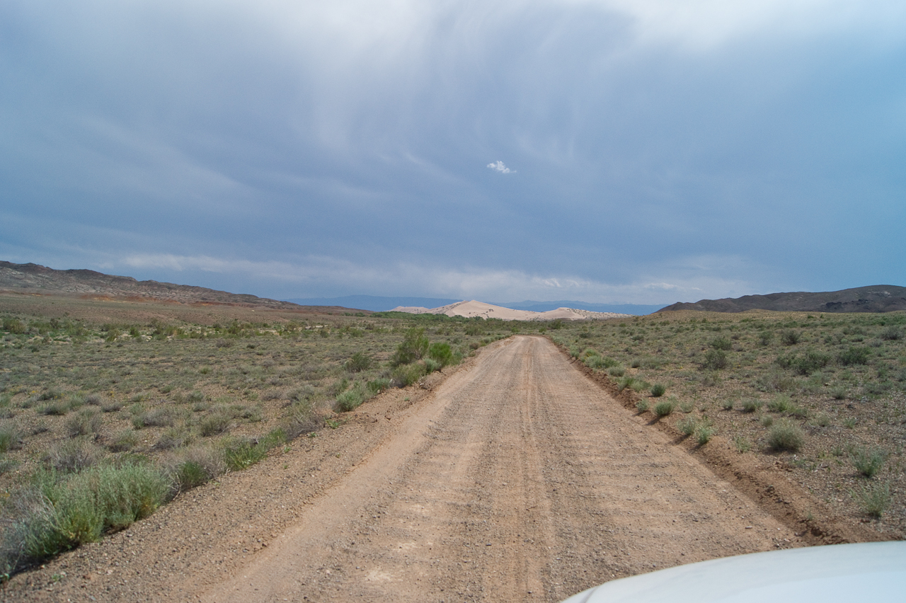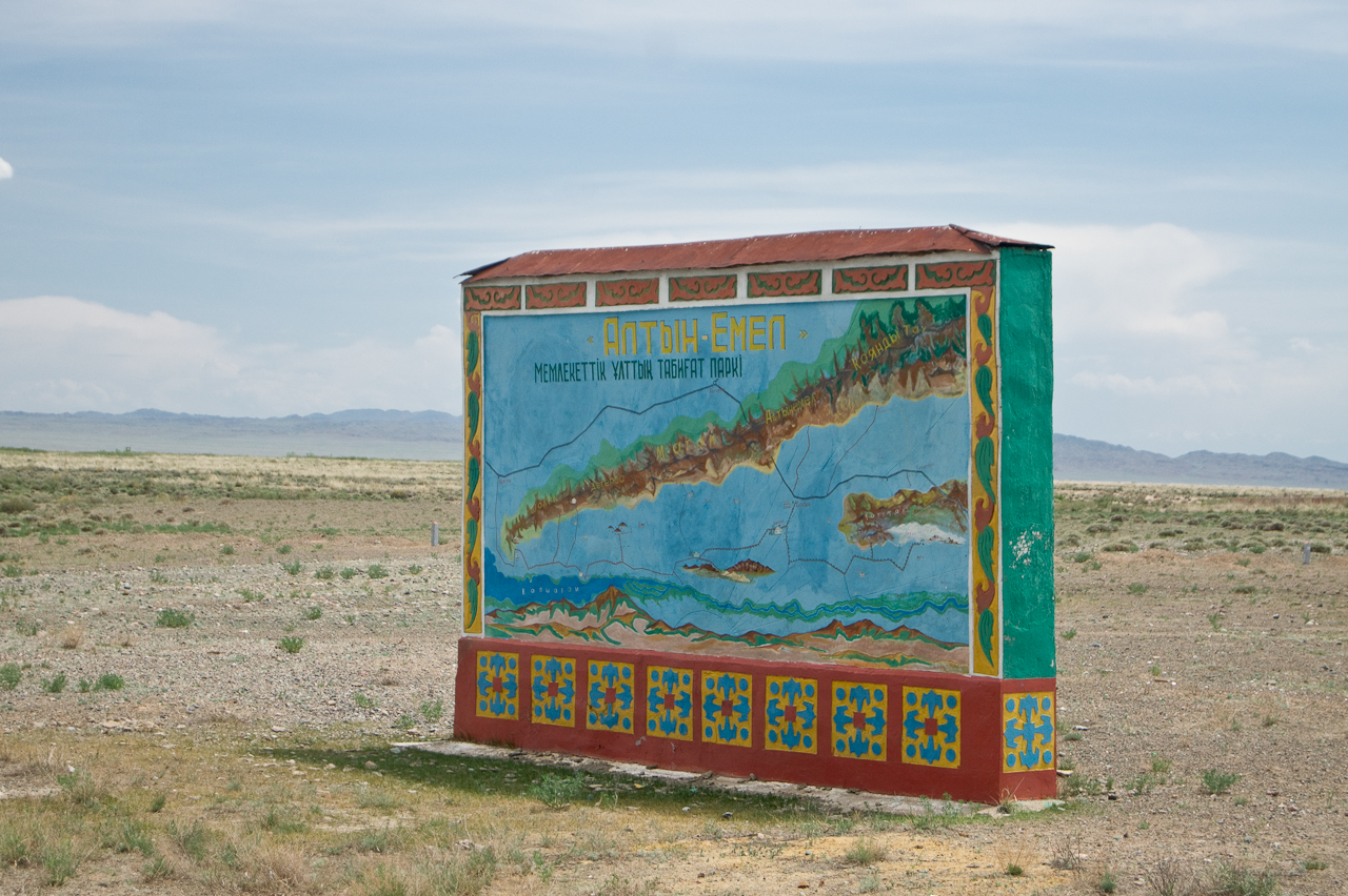 Heute steht die Fahrt zum Altyn Emel Nationalpark auf dem Programm. Wir mussten zwingend einen Führer buchen. Dieser fuhr bei uns im Fahrzeug mit. Da ich es gewohnt bin auch holprige Strecken zügig zu fahren, merkte ich dass es dem Guide nicht so angenehm war. Saule und ich erkundeten die singende Düne, während der Guide beim Auto in einem Unterstand geduldig auf uns wartete.
