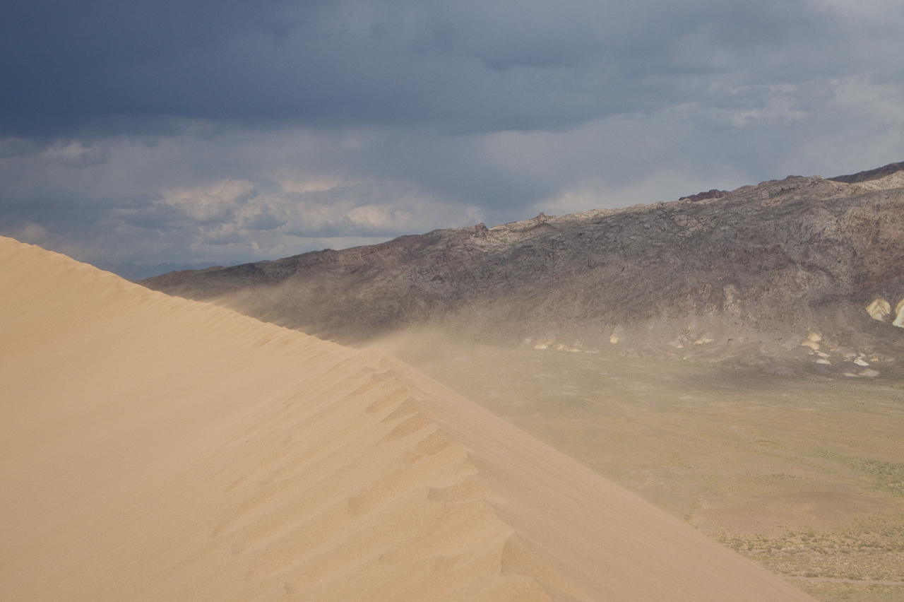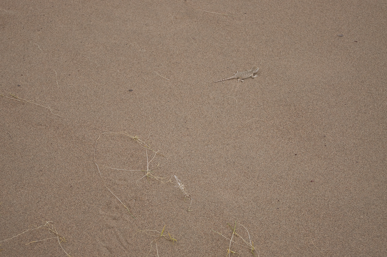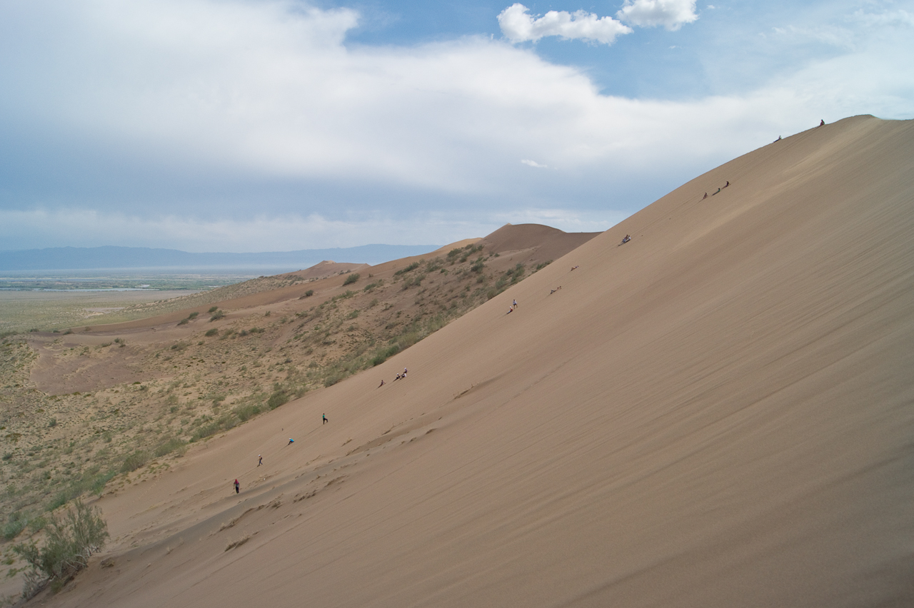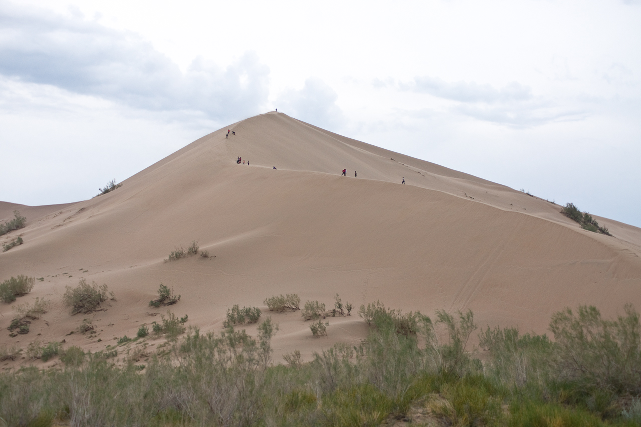 Heute steht die Fahrt zum Altyn Emel Nationalpark auf dem Programm. Wir mussten zwingend einen Führer buchen. Dieser fuhr bei uns im Fahrzeug mit. Da ich es gewohnt bin auch holprige Strecken zügig zu fahren, merkte ich dass es dem Guide nicht so angenehm war. Saule und ich erkundeten die singende Düne, während der Guide beim Auto in einem Unterstand geduldig auf uns wartete.