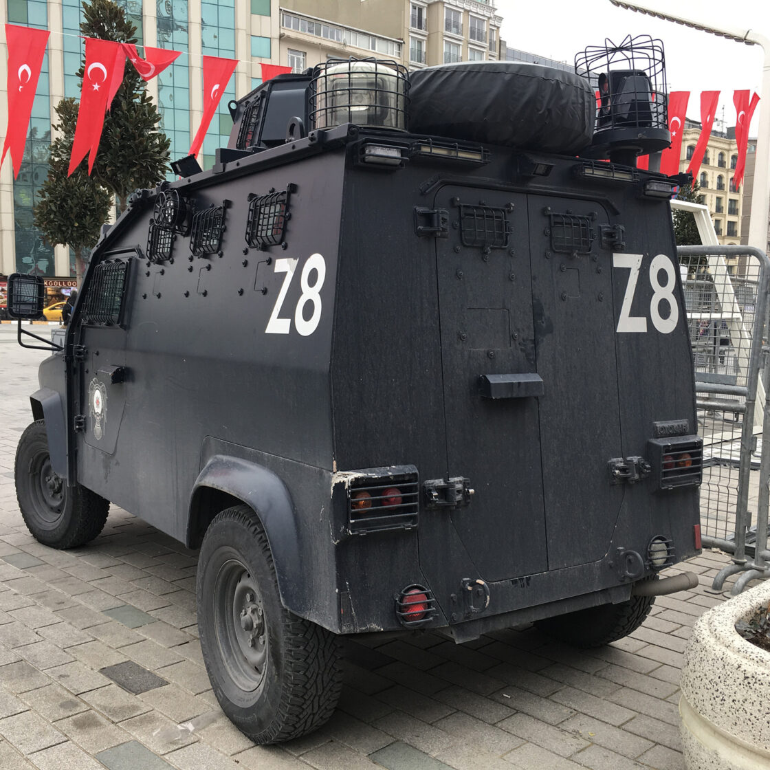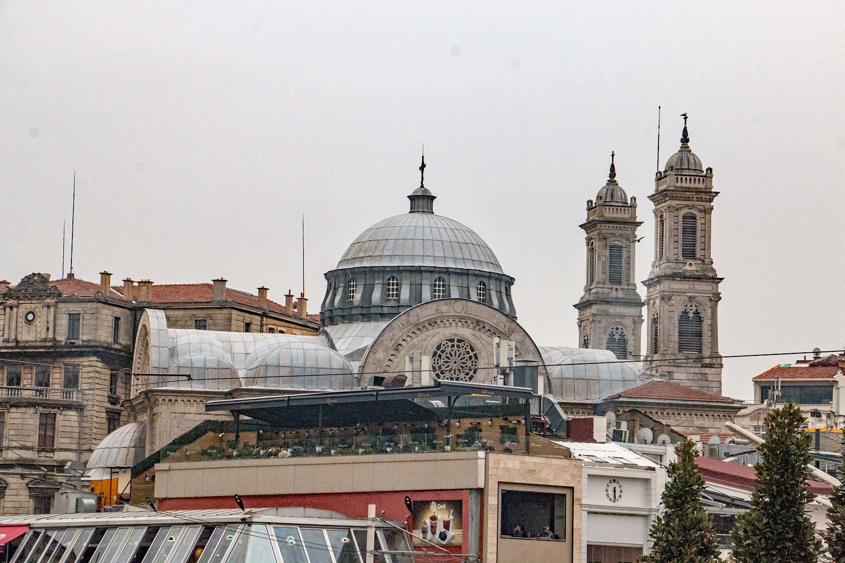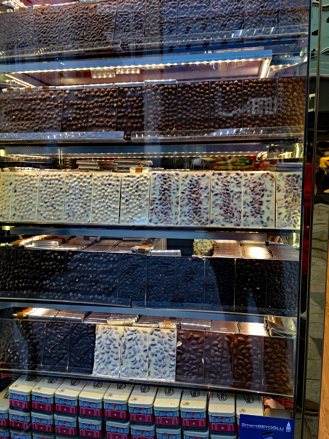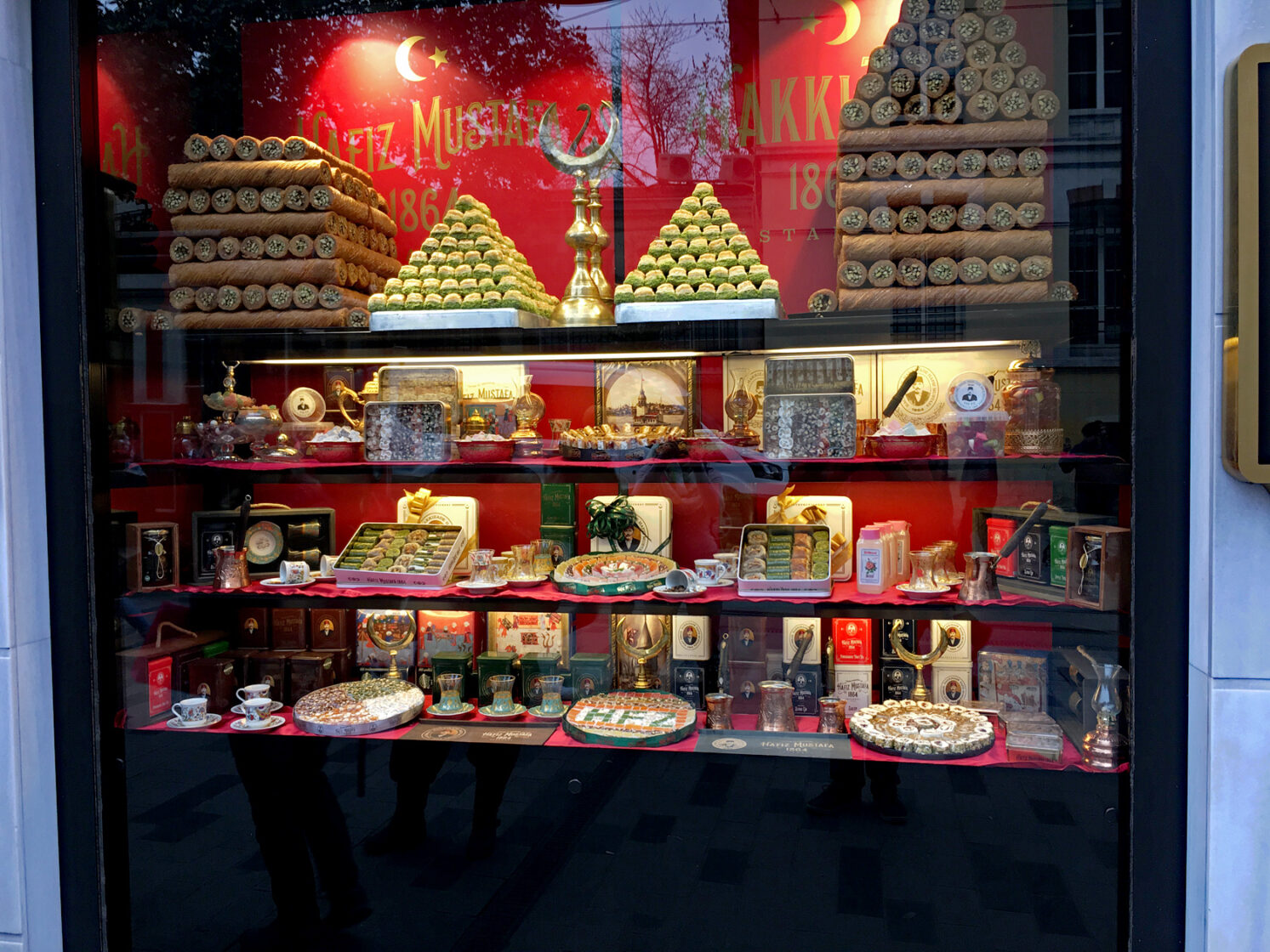 Beginnen wir mit einem historischen Gebäude, einer reich verzierten Kirche.Katholische Kirche Sankta Maria DraperisEinige Blöcke weiter, die nächste Katholische Kirche, die Basilika St. AntoniusCiçek Pasaji. Ein Geschäftsgebäude mit Restaurants und stilistisch irgendwo in Anfang des letzten Jahrhunderts.In der Ciçek Pasaji.Schon fast am Taksim Platz. Da zieht es uns magisch zu diesem Geschäft. Süssigkeiten und Schokolade in Perfektion.Vielleicht kein Läderach und kein Sprüngli aber doch sehr gehoben. Wir hatten es uns verkniffen etwas zu kaufen. Jdoch hätten wir trotzdem etwas kaufen sollen, nur es hatte so viele Leute.Der Taksim Platz. In aller Welt bekannt durch die Demonstration in 2013 die mit aller Härte nieder gerungen wurde.Der Blick zur Basilika St. Antonius.Ein ‚gepanzertes‘ Fahrzeug. Die Diensthabenden Sicherheitsleute wollten mir weiss machen, dass dies ein in der Türkei hergestelltes Fahrzeug sei. Ich widersprach höflich und meinte dass dies ein Land Rover 110 aus England sei und lediglich technisch modifiziert sei. Klar erkennbar an den Kotflügeln mit den Lichtern vorne und hinten.Ganz klar ein Land Rover 110 modifiziert durch Otokar. Ein türkisches Unternehmen, das neben Bussen und LKWs auch Militärische Fahrzeuge herstellt.Zurück zu Kulinarischem. Tafelschokolade – reihenweise. Mmmmh!Beim Kaffee trinken im 1. Stock nochmals das alte Tram aus den 20er Jahren aufgenommen. Gut zu sehen, dass auch sehr viele Leute, vorallem Türken auf dieser Strasse gehen.Technik der 20er Jahre, jedoch in den 50ern in Deutschland gebaut. Alle Mal schön anzuschauen.Statt der ‚Tünel‘-Bahn geht es zu Fuss runter. Ein toller Fruchtstand der gute Säfte zubereitet.Migros? Nein das ist nicht der orangene Riese aus der Schweiz, jedoch hat sich ein ähnliches Geschäftsmodel in den 60er Jahren entwickelt und es knüpft nach wie vor an das Geschäftsmodell der Migros Genossenschaft. Hierzu auch die Notiz in Kasachstan unter Ramstore lesen.Das Logo ist klar anders als in der Schweiz.Wenn das Logo anders wäre…Gegenüber ein Geschäft das sich ans Eingemachte macht… Alles mögliche ist diesen Gläsern konserviert. Keine Ahnung wie das schmeckt, ich denke jedoch dass die Türken schon wissen was gut schmeckt.