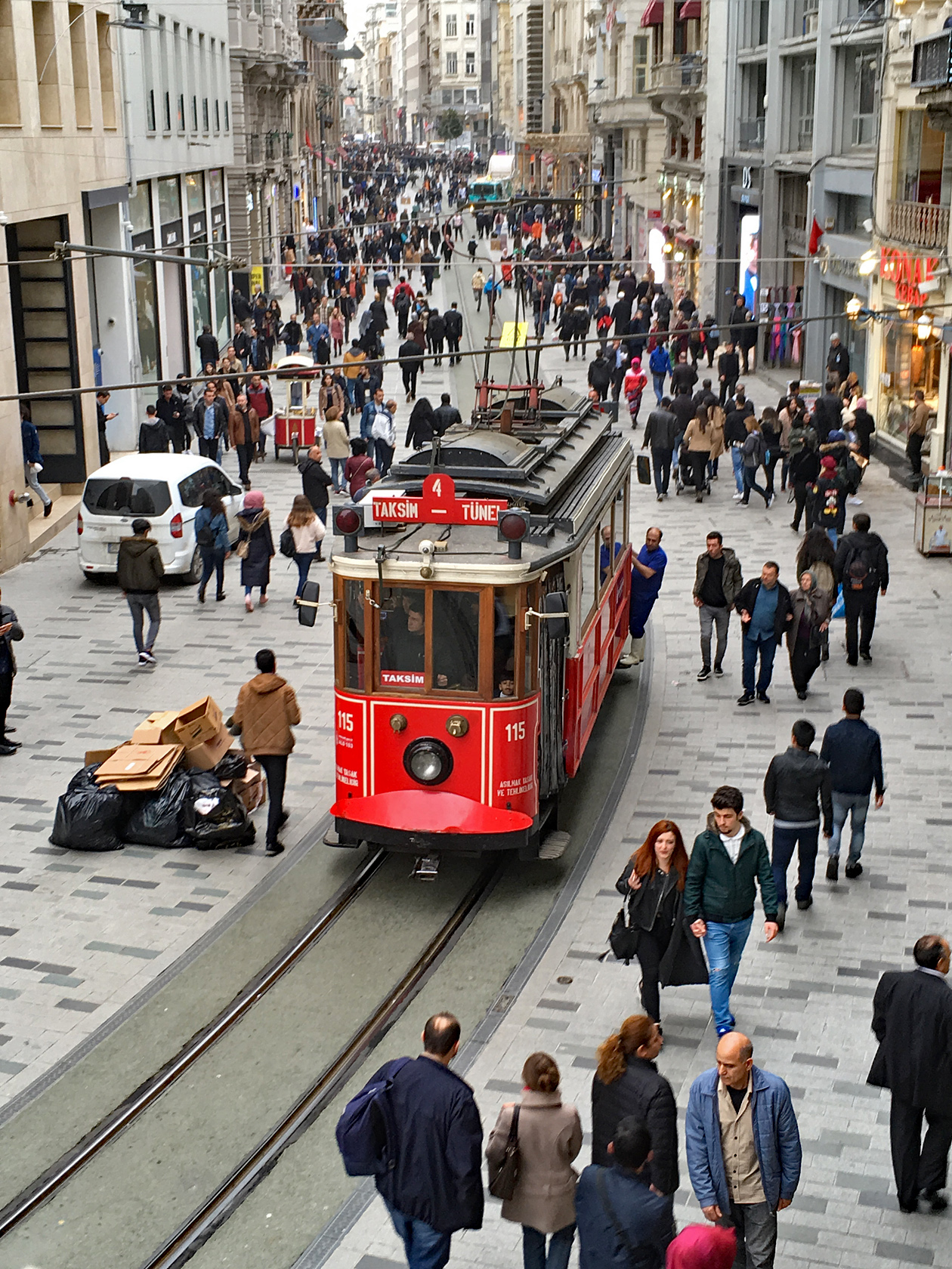 In Karaköy gibt es diese Strasse mit dem alten Tram, vielen Geschäften, oftmals teure Geschäfte und ab und an ein Historisches Gebäude. Diese ist mit der Bahnhofstrasse in Zürich vergleichbar, geschäftig, teuer und viele Leute.
