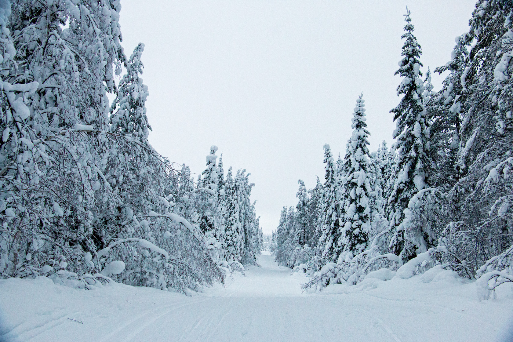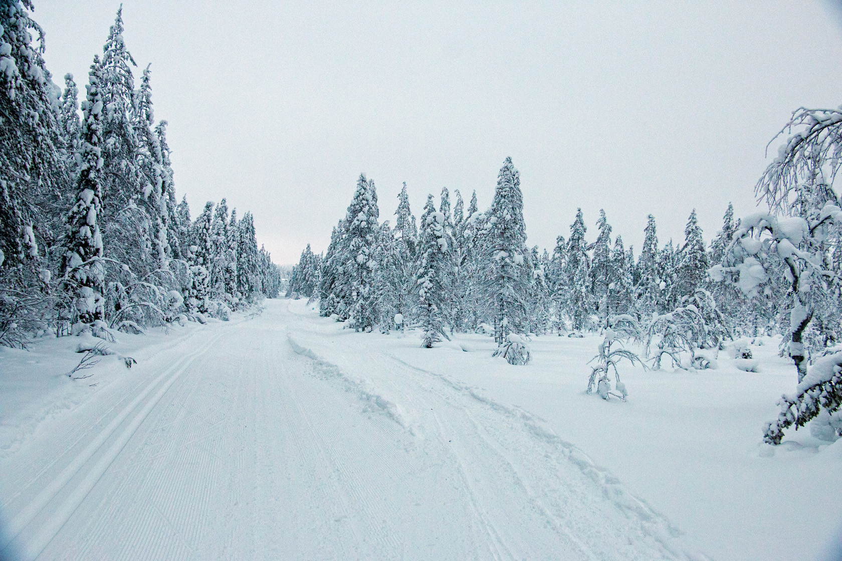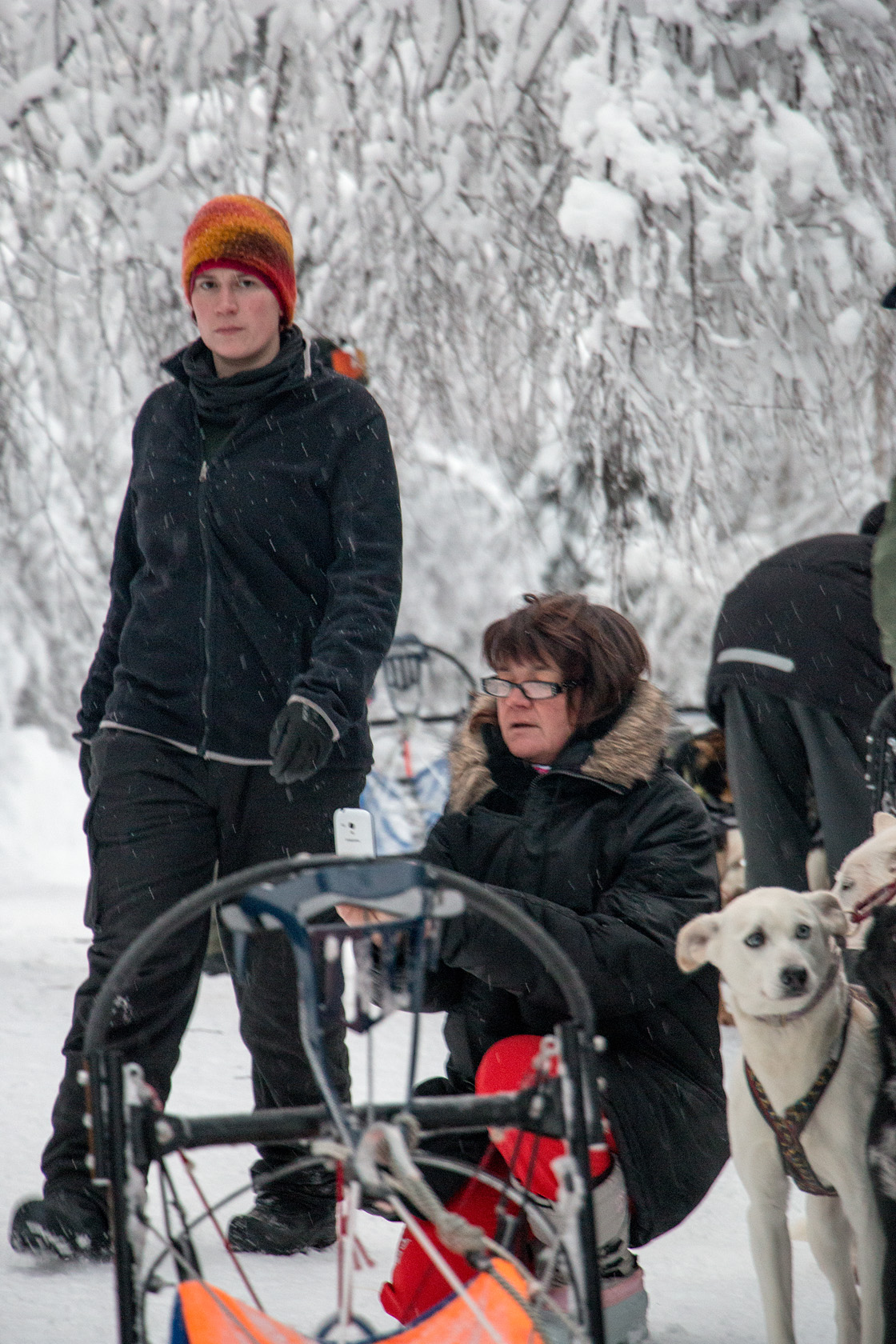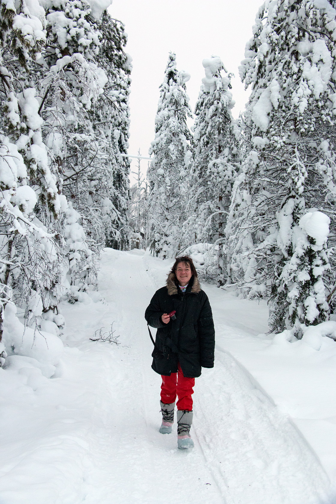 Vorbereitungen vor dem Hundeschlitten Fahren sind hektisch, laut und auch für das Personal der Unterkunft nicht ganz einfach zu bewältigen.Die Hunde werden extrem unruhig, es wird gut sichtbar weil sie zittern und völlig aufgeregt aufspringen oder bereits an den Schlitten reissen.Unsereins ist zuerst mal zu Fuss unterwegs. Wir geniessen den herrlichen Wintertag, den vielen Schnee.So macht es Freude! 😀Hinweisschilder entlang der Wege und…dort wo sich Hundeschlitten, Wanderer, Langläufer und Schneemobile kreuzen.Einzelne Bachläufe sind nicht zugefroren. Zu dieser Stelle gibt es noch eine Episode…Die erste Gruppe kommt von ihrer Hundeschlitten Tour zurück.Wir geniessen noch etwas die Ruhe abseits der Unterkunft.Von der Last der Winter geformt. Wir kennen das bei uns in den Alpen.Endlos scheint der Weg.
